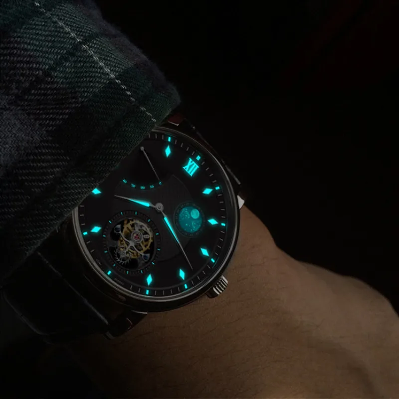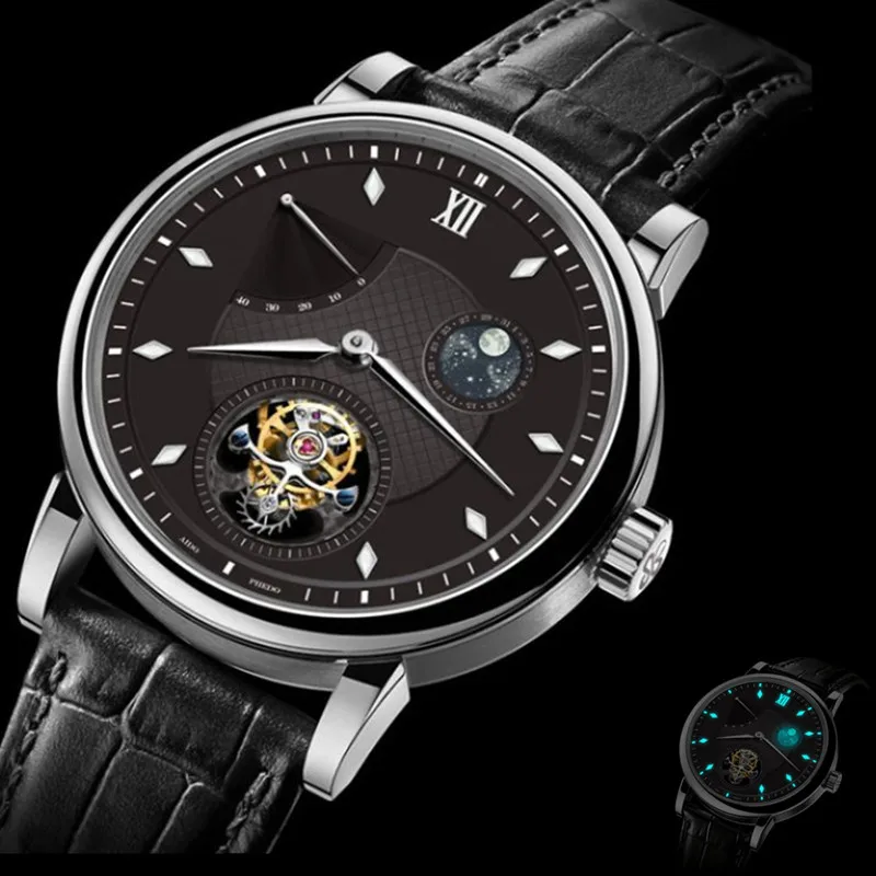 SALE High End Aidophedo Luminous Hands Mens Tourbillon Mechanical Watches GMT ST8001 Calendar Moon Phase