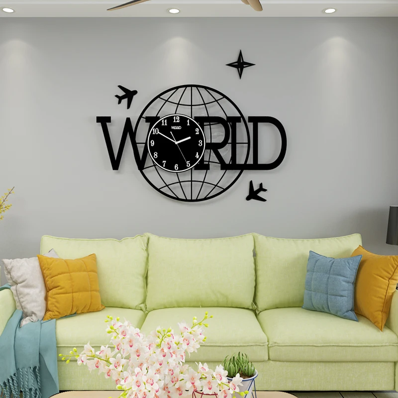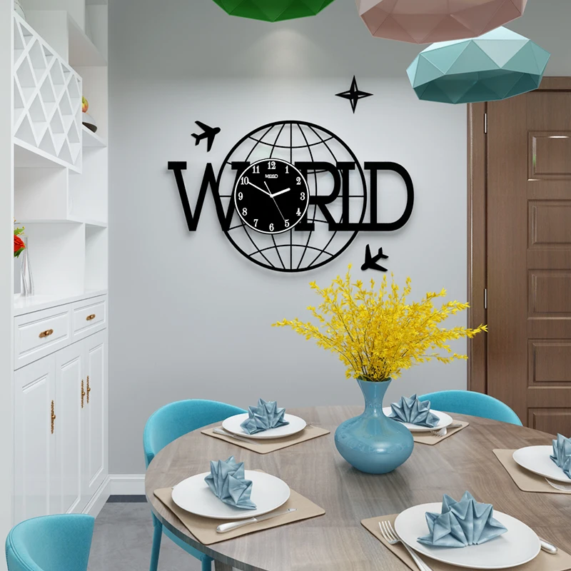Big Deal 2019 3D Digital Large World Wall Clock Modern Design Acrylic Quartz Decorative Clock With Wall Stic