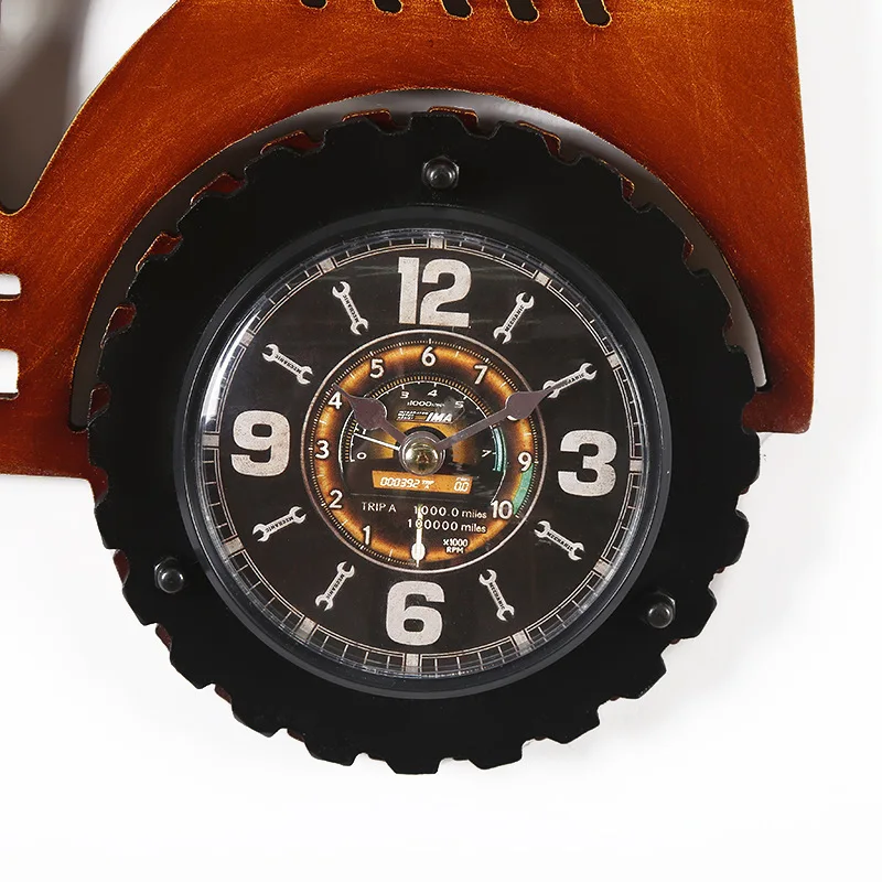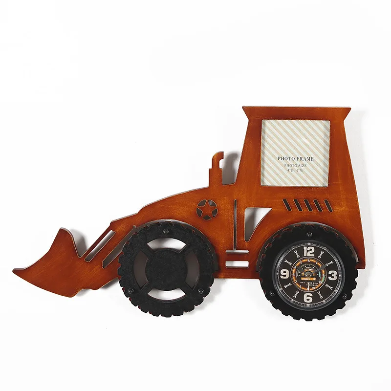 Flash Sale Creative Retro Tractor Excavator Wall Clock Big Size Wooden Photo Frame Wall Watch Cafe Bar Study H